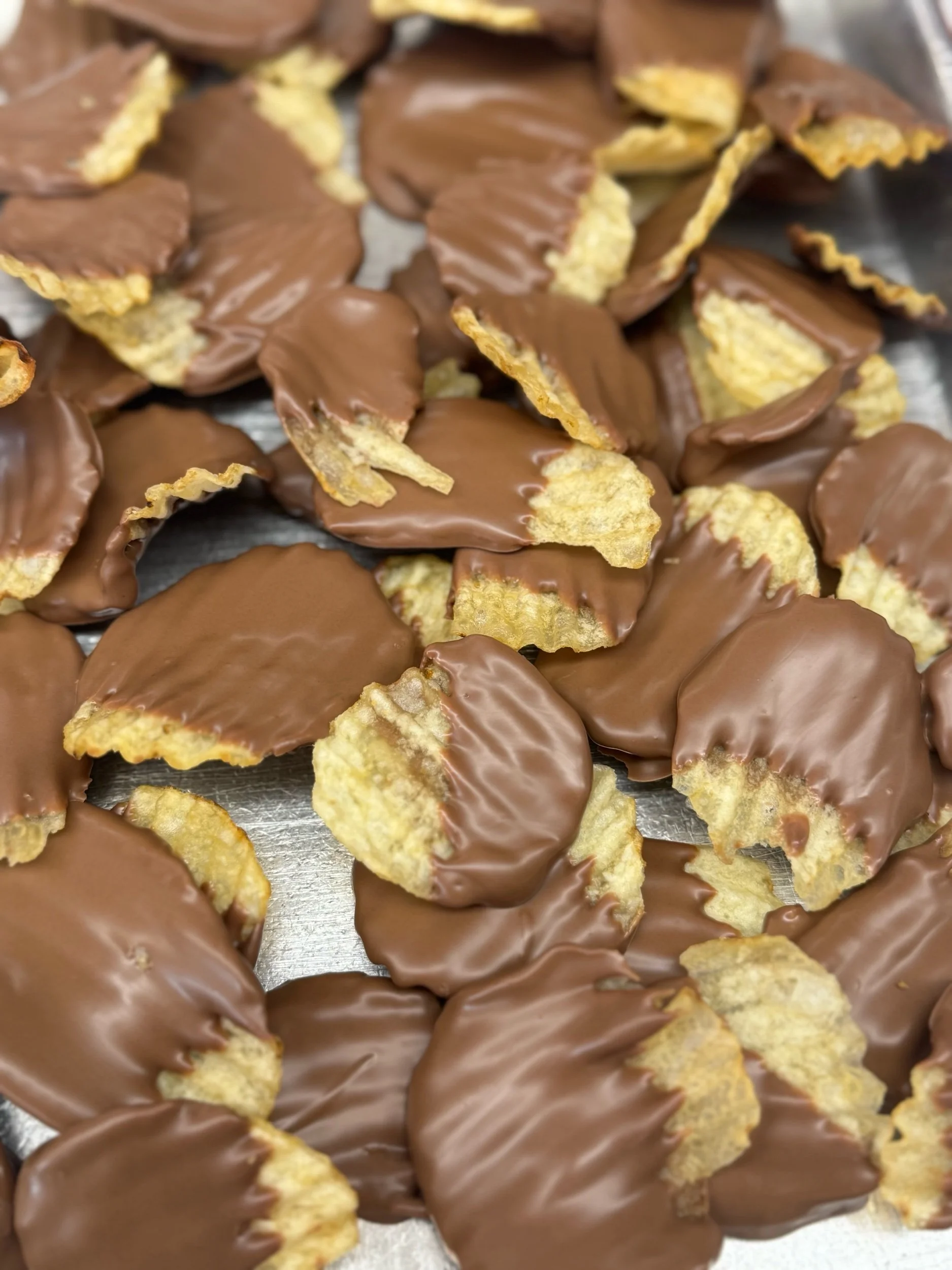 Chocolate Dipped Treats › Milk Chocolate Potato Chips (1/4lb) Image 1 of 1 Milk Chocolate Potato Chips (1/4lb) $5.00 Add To Cart Added!